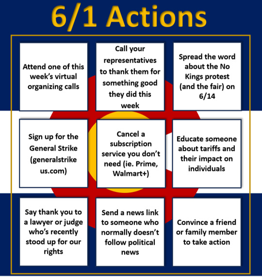 (The below list contains details on all actions this week which have been submitted to our 50501 CO calendar; click the link above for more details and the full calendar)