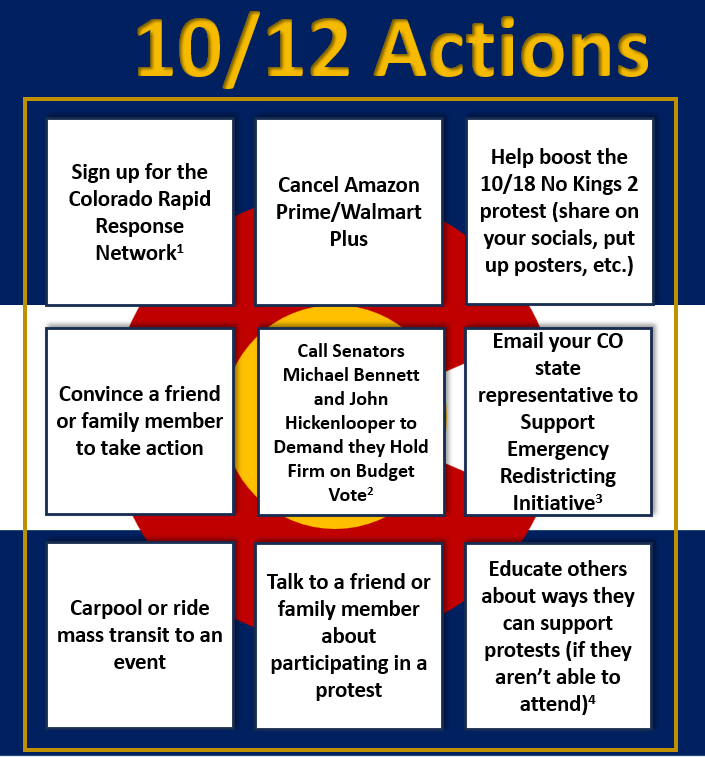 (The below list contains details on all actions this week and next week which have been submitted to our 50501 CO calendar; click the link above for more details and the full calendar)