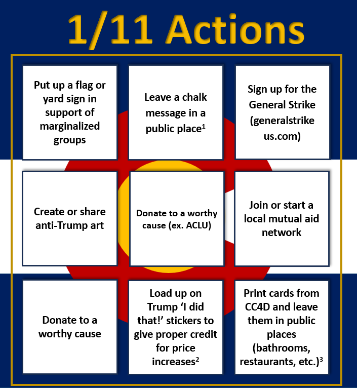 (The below list contains details on all actions this week and next week which have been submitted to our 50501 CO calendar; click the link above for more details and the full calendar)