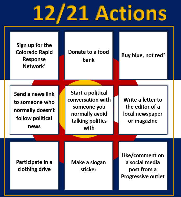 12/28: 11:00am - 12:00pm - Pop Up Rally (Safeway at 80th and Wadsworth in Arvada)