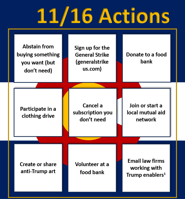In this newsletter, we discuss the impact of the ending of the government shutdown. In addition, you’ll find information on upcoming activities from the 50501 calendar, actions you can take outside of protesting, and also find out about additional ways to connect with us.