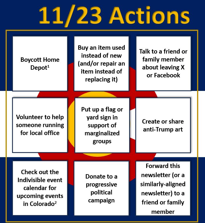 (The below list contains details on all actions this week and next week which have been submitted to our 50501 CO calendar; click the link above for more details and the full calendar)